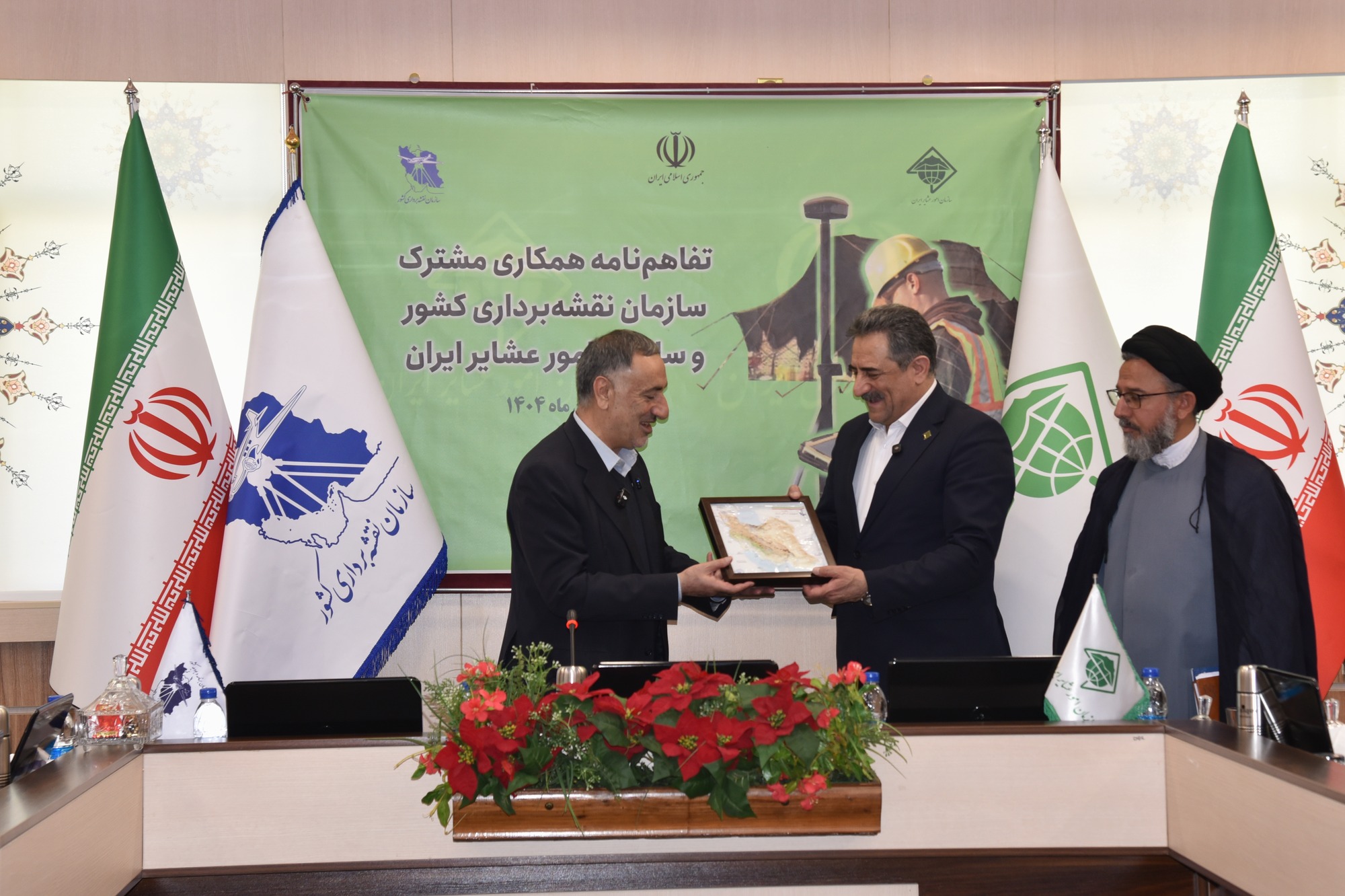 به گزارش روابط عمومی سازمان نقشه‌برداری کشور، تفاهم‌نامه همکاری سازمان نقشه‌برداری کشور و سازمان امور عشایر روز سه‌شنبه 28 بهمن‌­ماه، در محل آن سازمان، با حضور دکتر صیدایی، رئیس سازمان نقشه‌برداری کشور، دکتر میرزاوند، رئیس سازمان امور عشایر ایران، معاونان و مدیران دو دستگاه و شرکت وبیناری جمعی از مدیران امور عشایر استان‌­ها به امضا رسید.